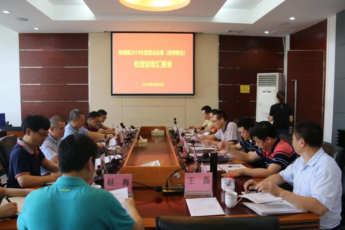 市考评组一行先认真听取了由荷塘镇党委书记区林杰作的整治工作汇报,汇报从背景分析、主要做法、工作成效、存在问题、下一步计划等五个方面进行阐述,表明荷塘镇2018年度涉恶问题整治到位,全镇治安问题管控得当,社会治安环境总体向好,群众安全感和满意度明显提高。副区长、公安分局局长李泗玲补充说明,荷塘镇2018年度的挂牌整治工作呈现“两下降,两上升”态势,即在警情下降、发案数下降的同时,打击力度上升、群众安全感和满意度上升,重点治理成效明显。