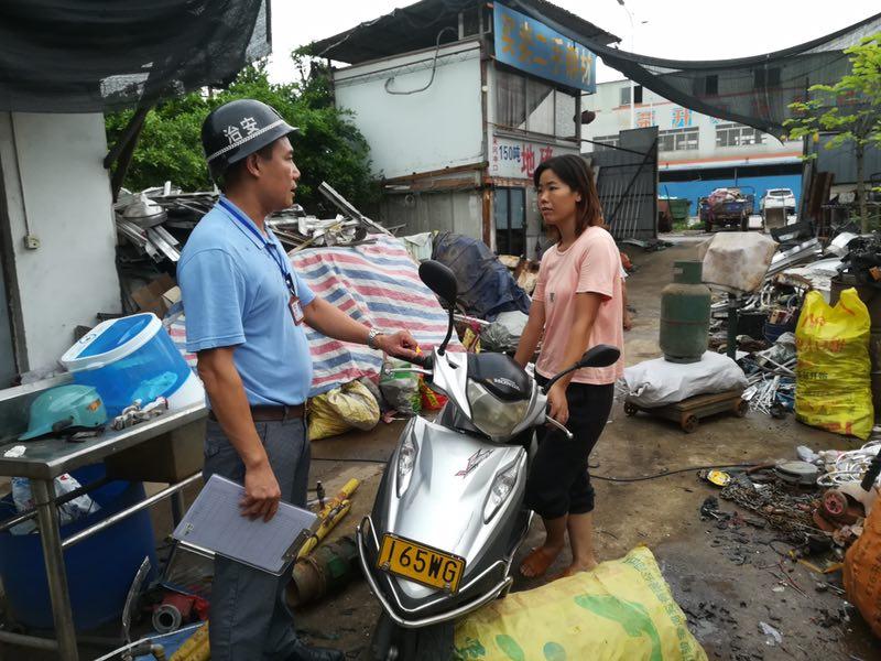 (▲8月16日,镇安监局、城管中队约谈禾冈大坦路段、龙湖花园路段大型废品回收站主要负责人,传达镇委镇政府关于开展废品回收站专项整治工作的决策精神)