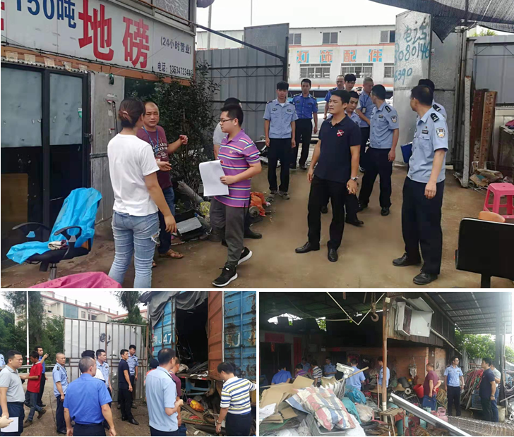(▲8月21日,联合执法小组到禾冈大坦路段、中泰东路段、北昌西路段对废品回收站开展执法检查)