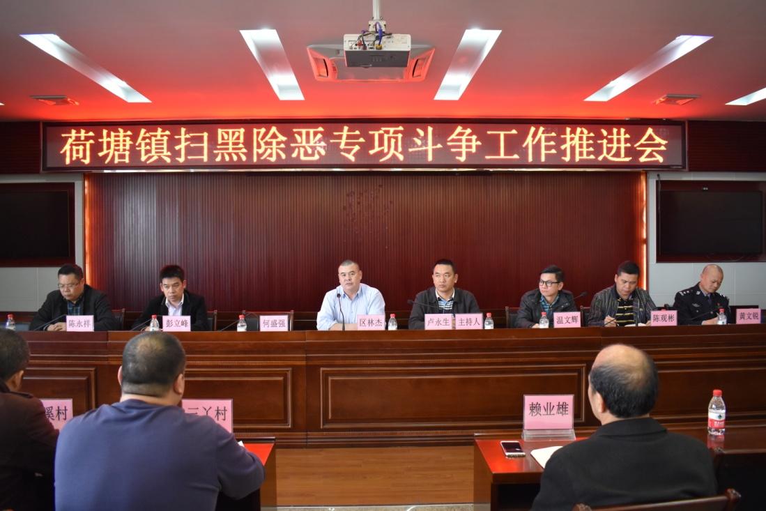 为进一步推进荷塘镇扫黑除恶专项斗争向纵深发展,切实保证中央和省委、市委、区委的决策部署真正落到实处,3月15日下午,荷塘镇召开扫黑除恶专项斗争工作推进会。镇委、镇政府全体班子成员、各部门负责人、各村(居)书记和主任、镇扫黑除恶办全体工作人员等50多人参加会议。会议由镇长卢永生主持。
