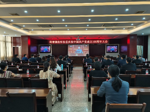 7月1日上午,庆祝中国共产党100周年大会现场直播在北京天安门广场隆重举行。中共中央总书记、国家主席、中央军委主席习近平同志发表重要讲话。荷塘镇三套领导班子成员、主任科员、部门单位负责人、村(居)书记共56人到荷塘镇政府三楼会议室集中收听收看大会现场直播盛况。