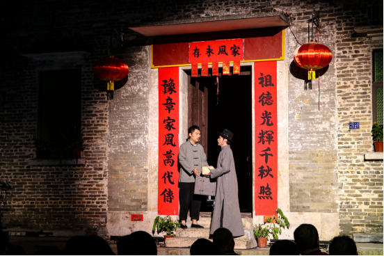 此外,演出地点选在良溪村地标——罗氏铭祖祠,更生动地展现了“后珠玑巷”良溪村的历史底蕴。“将此剧置于村内篮球场,既能传播村历史文化,活化老旧房屋,又对探索村落活化、通过文旅结合吸引更多人走进美丽乡村具有示范意义。”黄樱枝表示。