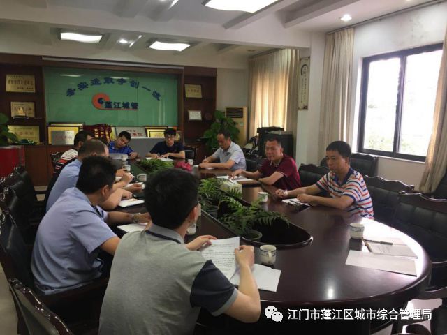 区城管局召集蓬江交警大队、区环保局、区住建局开展进一步加强我市散装物料运输车辆(泥头车)扬尘污染联合执法工作会议。会议上区城管局副局长廖志坚传达了市领导对散装物料运输车辆(泥头车)管控工作的相关批示和工作要求,并提出充分发挥各单位监管职能,完善“责任明确、监管有力”的工作机制,集中力量和时间开展联合执法。并强调在执法过程中要严格依照法律法规、依法处置违法行为,全面加强散装物料运输车辆(泥头车)综合管理,抓好施工工地和运输路线扬尘治理,营造良好的市容环境秩序。