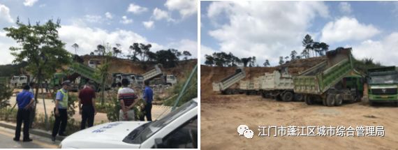 工作会议后,区城管局连同交警大队、区环保局、区住建局立即开展联合执法行动,上路巡查散装物料运输车辆运行情况。联合执法人员发现群华路有一处正在开挖平整土地的工地,检查该工地中的运输企业是否有相关审批手续资料,负责人当场不能提供相关材料,区城管局责令其负责人停工并按规定办理《建筑垃圾准运证》且接入江门市建筑垃圾运输车辆GPS监管平台。