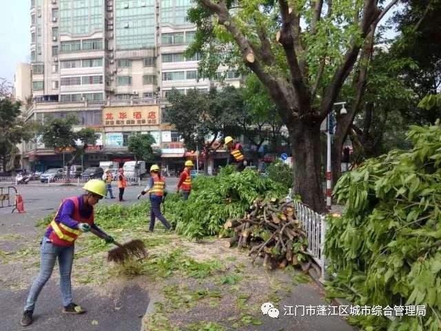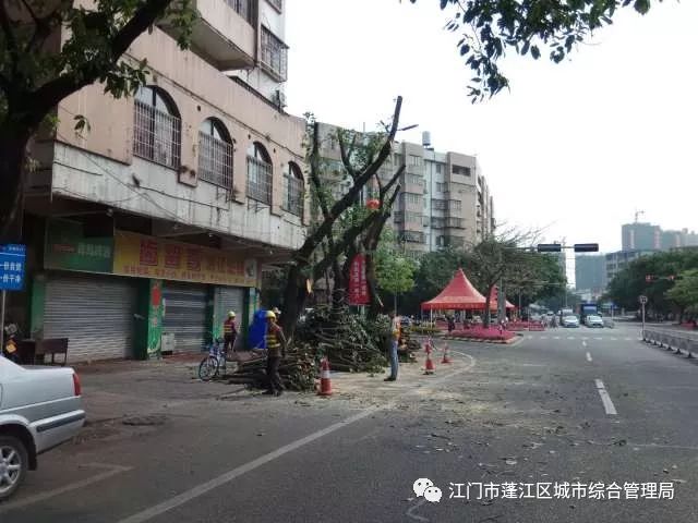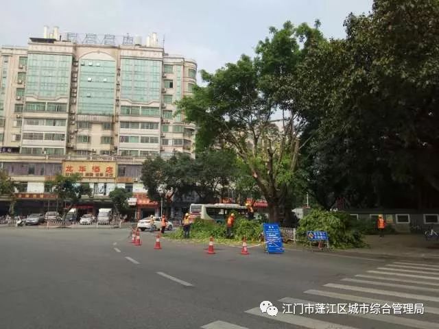 作业现场部分路段人多车多,给树木修剪带来一定难度,我们结合现场实际,按照既定方案,积极与蓬江交警大队及属地中队等现场协调,通过合理安排人员进场施工,确保作业人员、通行车辆和行人的安全。