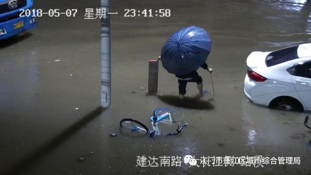 但是,抢险队员们并没有掉以轻心,雨还在下,现在远没到松懈的时候!果然,四十分钟不到,23点16分建达南路的积水就达到了30毫米,而到了23点48分,积水已经达到了35毫米,这样的深度已经足以淹没小腿!