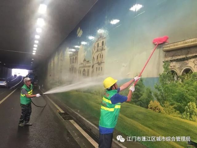 2018年5月,我站借着巩固创文成果和全面提升城市品质的契机,用软质清洁工具和喷洒清洗装置对迎宾路—建设路下沉式立交隧道两侧壁画进行了一次全面的清洗,并配合区城管局拆除下沉立交内残旧、损坏的隧道灯,新安装了156套LED灯。