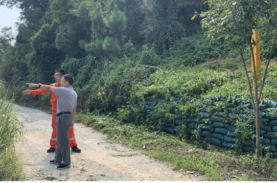 检查组先到国家管网集团广东省管网有限公司杜阮镇井根村地质灾害风险点,现场检查企业该处地质灾害点巡检记录情况及日常风险管控工作开展情况。该管道沿斜坡敷设,排水效果较差,且近期台风天气多发易发生滑坡,可能造成管道裸露。经查,企业已对该风险点加固挡墙、落实永久截排水、维护管道加密桩和警示牌、加强日常巡查等相关防控措施防范风险隐患。检查组强调,管道企业要进一步提高安全意识,落实主体责任,加强风险点防控措施及对周边第三方施工管理,严防较大以上事故发生。