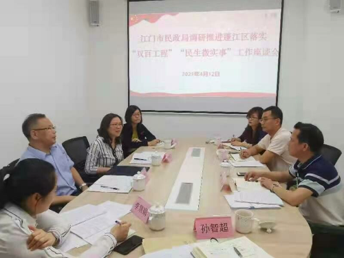 为落实市委、市政府关于“双百工程”和“民生微实事”工作部署,4月12日,市民政局党组书记、局长谢鸿猷一行到春雨直播 调研督导“双百工程”社工服务站建设、“民生微实事”项目开展等工作。