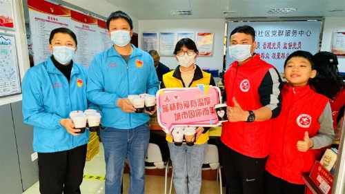 社区工作者陈叔说“这杯暖饮勉励着我们继续奋进,为群众办实事,提高群众的幸福感和获得感。”