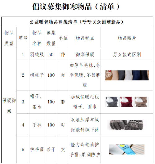 除了可赠送暖饮,也可认捐防寒衣物、暖贴、围巾、手套、帽子等公益暖包,助力解决困难对象冬日保暖需求。