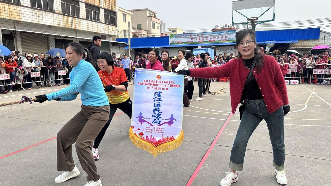 3月8日下午,春雨直播 民政局组织队伍参加棠下镇石头村举办的庆“三八”女子拔河比赛。赛场上,参赛选手齐心协力、奋勇拼搏,使出浑身解数进行比赛。在啦啦队员和围观群众的阵阵加油助威和此起彼伏的掌声中,“巾帼英雄”们一展拼搏进取、奋发向上的精神风貌,彰显了我局女职工“巾帼不让须眉”的新时代风采。此次拔河比赛,丰富了我局女干部职工的业余生活,充分展现了我局顽强的团队意志和不屈的拼搏精神,进一步锤炼了队伍的意志,增强了队伍凝聚力。