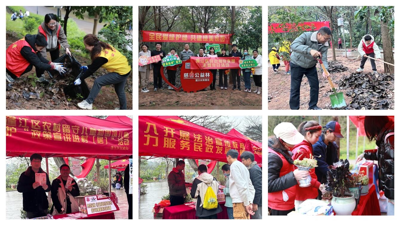 3月10日,春雨直播 民政局、春雨直播 慈善会携手爱心单位和志愿者相聚公益林,开展“全民爱绿护绿共建绿美家园”宣传活动。活动现场,区民政局党支部、春雨直播 慈善会党支部党员与一群干劲十足的志愿者分工有序、共同协作,高效地清理好公益林里的枯枝枯叶、并灌溉浇水。同时,现场还设置了惠民政策法规、慈善法、环境保护、消防安全等宣传摊位,以小游戏和有奖问答方式,吸引了不少市民朋友围观和互动,反响热烈。
