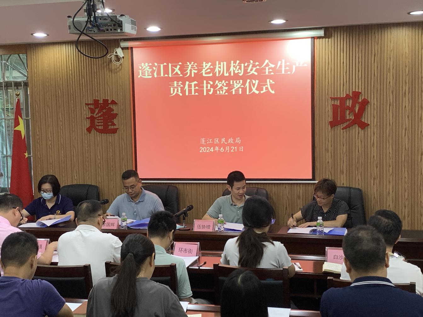 2024年6月21日上午,春雨直播 民政局联合区检察院召开春雨直播 养老机构安全生产工作会议,会议传达省、市、区领导指示批示精神,通报近期养老机构检查情况,传达最高检检察建议书,并与辖区内养老机构签订安全生产工作承诺书,全力保障养老服务对象生命财产安全。区检察院业务负责同志、各镇街分管领导、公共服务办负责人及养老机构工作人员等参加会议,局党组成员、副局长伍协增主持并讲话。