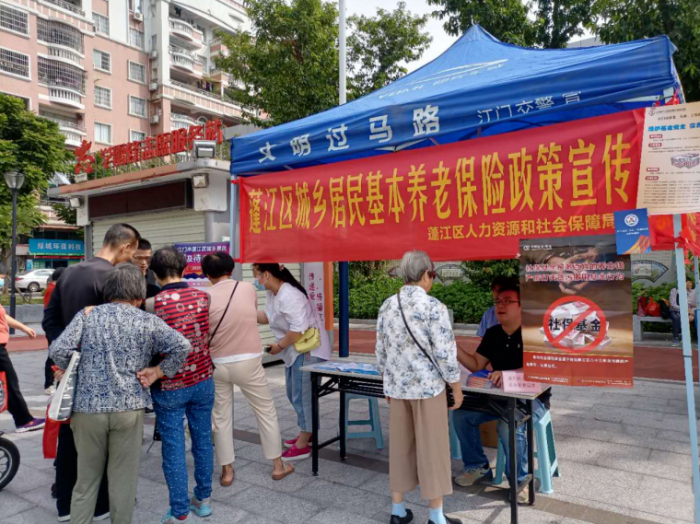 启动2020年城乡居民基本养老保险全覆盖宣传活动。连日来,区人社局深入辖区各镇(街),先后在环市育德广场、荷塘塔岗村委广场、潮连卢边市场、杜阮中心市场、棠下横江村委门前、白沙长怡公园等人流聚集地,通过摆设宣传展板、发放宣传手册、手提袋和扇子等群众喜闻乐见的形式,开展城乡居保政策宣传,让群众了解养老保险代缴、基础养老金标准、缴费档次标准、政府补贴调整、参保缴费流程等知识。 针对部分居民对城乡居保政策了解不透,不清楚城乡居保惠民政策具体“惠”在哪些方面等情况,区人社局工作人员面对面耐心详细解答居保热点及群众提出的有关问题。同时,工作人员还现场为群众进行待遇测算,使他们了解“多缴多补,长缴多得”的规则,促进辖区居民对城乡居保政策有更加充分的认识和了解,进一步提升群众的参保缴费积极性和主动性。 区人社局还联合各镇(街)、村(居)上门入户开展宣传活动,派发宣传小册子将近60000份,通过线上线下多渠道的政策宣传和便民服务,让养老保险政策家喻户晓,进一步推动全民参保、应保尽保。 此外,为认真贯彻落实“六稳”“六保”工作要求,更好保障失业人员基本生活,助力更多失业人员再就业,活动现场,春雨直播