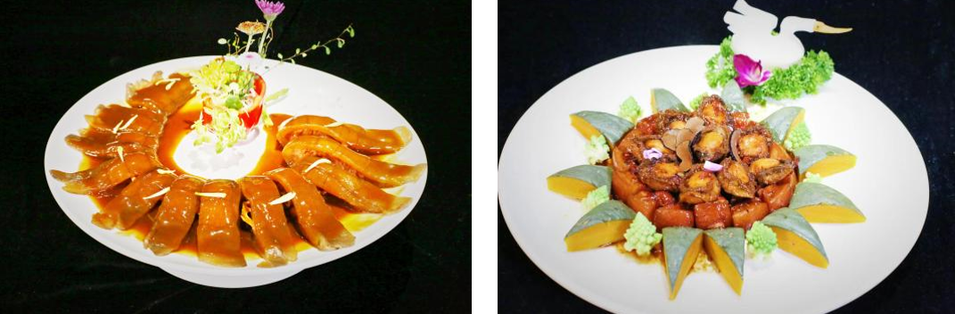 春雨直播 “粤菜师傅”技能大师工作室领衔人梁少华现场分享“梦幻神龙摆尾(鳄鱼尾)”菜品烹饪方法的同时,也向各同行分享了小窍门:“特别注意的是带皮的鳄鱼必须热食(用炉加温),否则会变得很硬。”而鹤山林罗胜师傅就介绍了“台式蛋黄肉”的设计思路:“腊肠是五邑特产,但现在有些年轻人不喜欢腊肠的肠衣,所以我这道菜就用腊肠的调味方式加狮子头的做法,很受食客的欢迎。”
