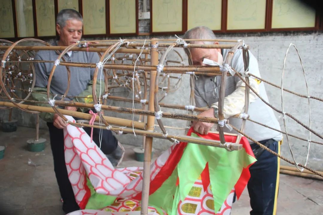 纱龙龙会师傅李振图向学生传授纱龙制作和舞龙技艺