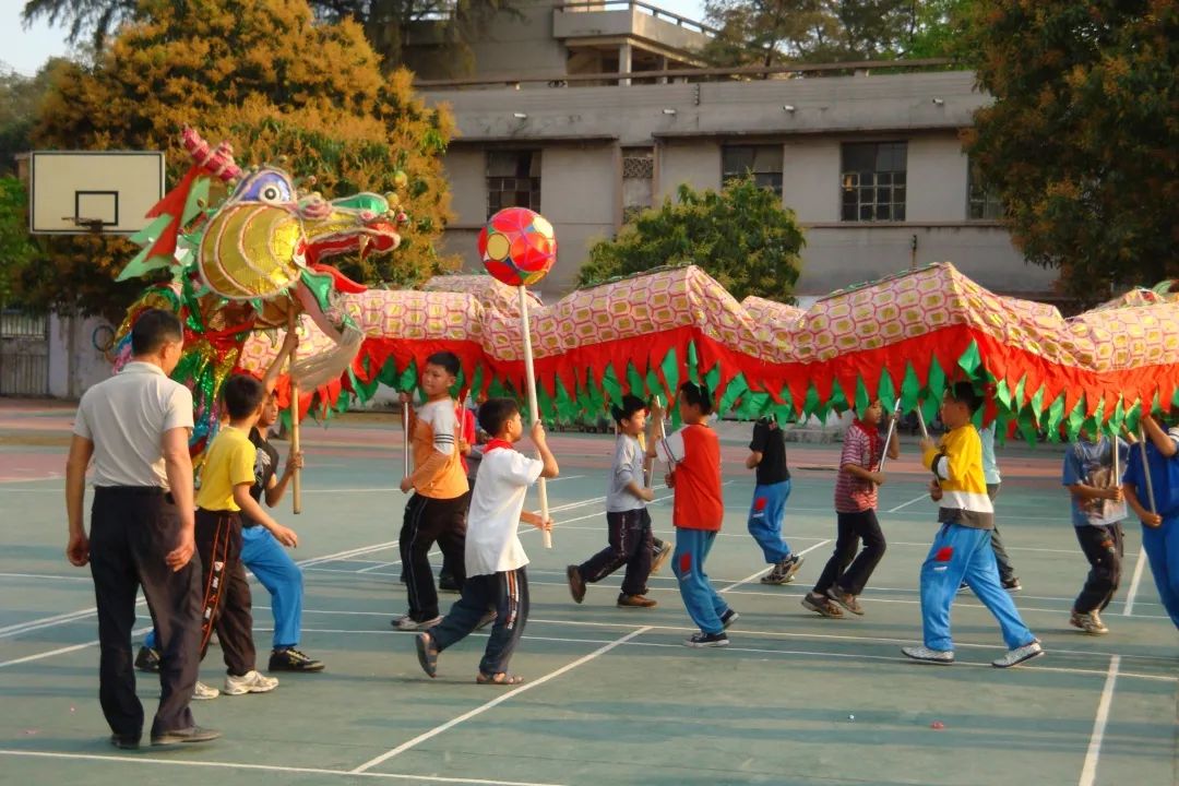 篁湾中心小学全体教师学习舞龙技巧