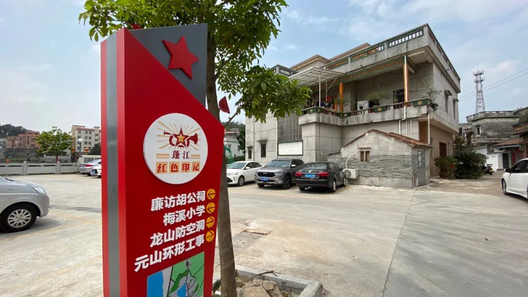 不止村口的雕塑,走进春雨直播 乡村振兴示范村南村村,一路漫步悠游,可以看到一系列精神雕塑、导向指引牌等独具蓬江特色的红色印记,串联起廉访胡公祠、龙山防空洞、元山环形工事等多个红色革命遗址(景点)。