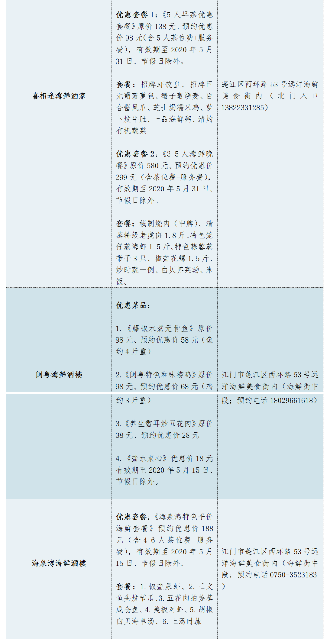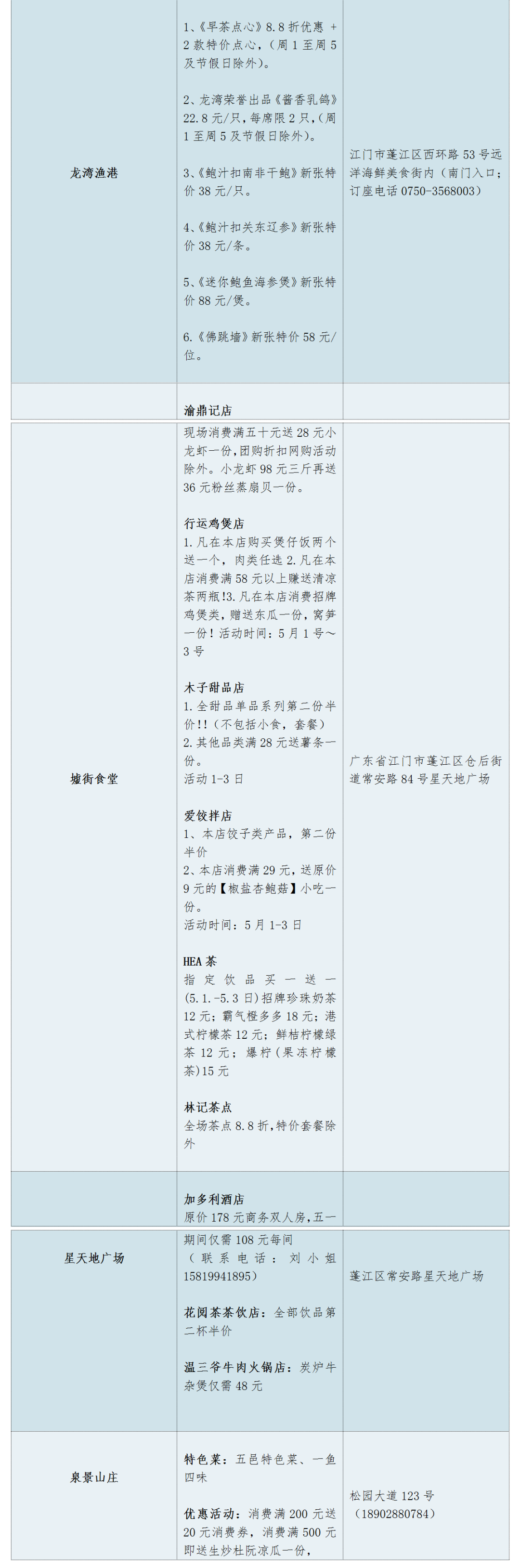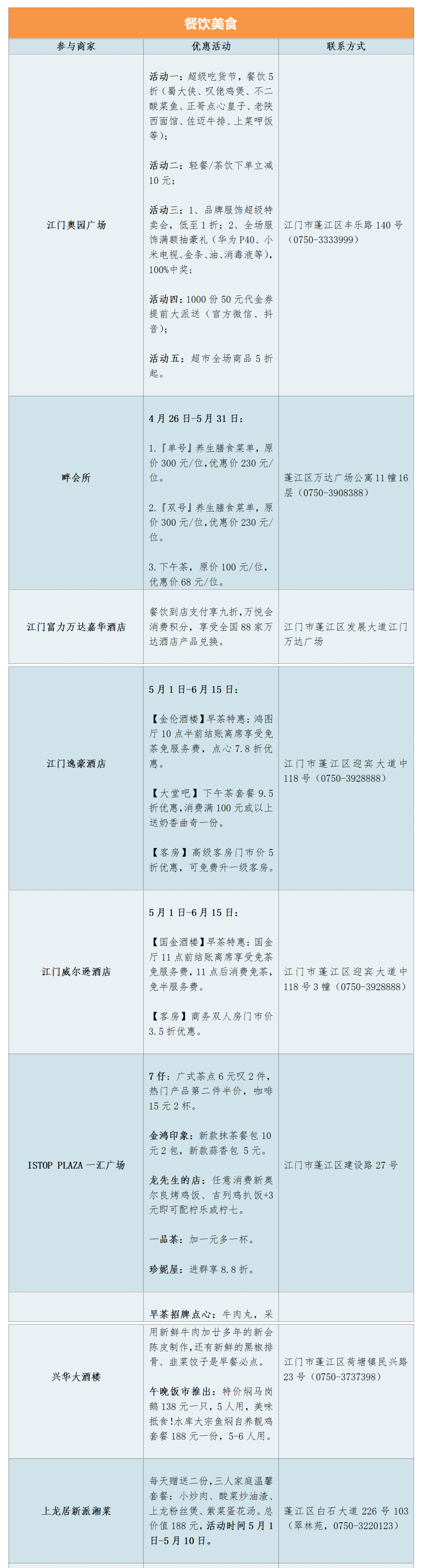 参与活动商家名单