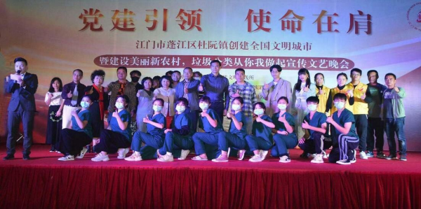 为深入推进全国文明城市创建工作,杜阮镇南芦村委会不断加强创文各项工作部署及落实。2020年12月13日晚,在杜阮镇新时代文明实践所的指导下,南芦村新时代文明实践站在村内主办了一场“创建全国文明城市暨建设美丽新农村、垃圾分类从你我做起”宣传文艺晚会。本场晚会以“党建引领、使命在肩”为主题,由江门市仁爱社会工作综合服务中心承办。杜阮镇委委员高豪领等领导及南芦村委会班子成员出席晚会,有300多名村民到晚会现场观看。