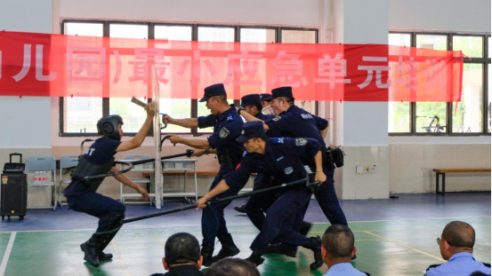 为进一步提升校园安全应急防范能力,落实“1分钟自救、3分钟互救、5分钟增援到位”最小应急单元处置机制,2024年8月30日上午,杜阮中心学校联合杜阮派出所开展了杜阮镇中小学(幼儿园)最小应急单元培训。江门市公安局蓬江分局特警大队教导员彭耀萱、江门市公安局蓬江分局特警大队副中队长肖池斌、杜阮派出所副所长郭伟、杜阮派出所分管校园安保工作主要负责人聂建强队长、杜阮中心学校负责人和杜阮镇中小学校(幼儿园)分管安全领导、保安人员约100人参加本次活动。