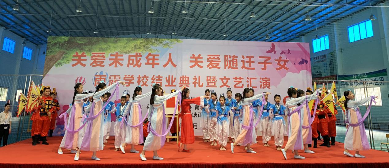 7月12日,荷塘镇在辖区内外来工子弟较多的雨露学校举办题为“关爱未成年人、关爱随迁子女”文艺汇演,邀请家长和学生共同参与,通过课本剧、小品、歌舞等喜闻乐见的形式,宣传防溺水、交通安全、用电安全、食品安全、防拐防骗等方面的内容,提高他们的防护意识,增强自救能力。