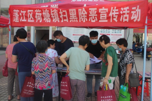 此外,开展摆摊设点活动的前一天,荷塘镇扫黑除恶办已派驻党员干部联合荷塘社区、唐溪村委会开展党员干部入户引导宣传,面对面向广大群众普及扫黑除恶知识,进一步提升群众的知晓率、参与度和支持率。