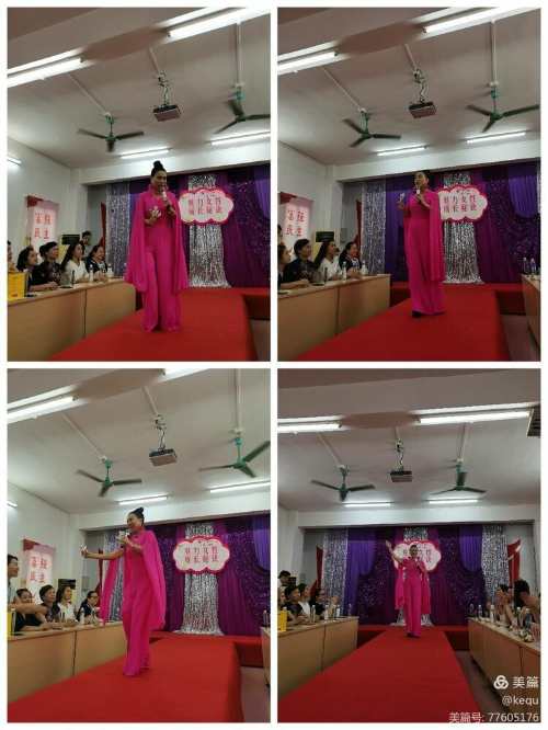 原来,是举行“非凡气质”训练班开班体验课。举办方邀请了2012环球夫人世界冠军、2012环球夫人中国总冠军、明雀集团创始人明一梦主席亲临荷塘成人学校作现场宣讲。
