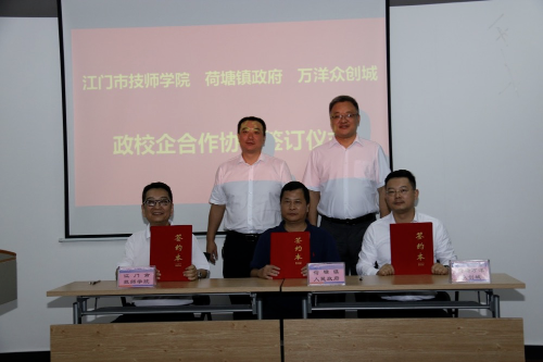 荷塘镇、江门市技师学院与荷塘万洋众创城共同签署政校企合作协议。