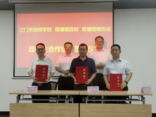 荷塘镇、江门市技师学院与荷塘照明电器行业协会共同签署政校企合作协议。
