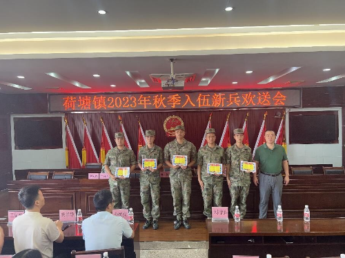 风华正茂,参军报国;金秋九月,扬帆起航。9月12日下午,荷塘镇组织2023年秋季新兵入伍欢送仪式,热烈欢送今年下半年应征入伍的15名新兵奔赴军营。镇党委书记刘屹,镇武装部部长谭俊锋等镇领导班子成员参加欢送会。本次入伍启程的新兵们身着崭新迷彩服,佩戴授带、大红花,气宇轩昂、精神抖擞、意气风发,肩负着家人的期望和家乡的重托,奔赴军营,带着一腔热血光荣踏上军旅征程。