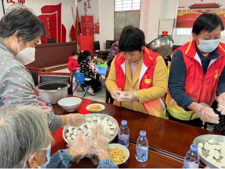 党员群众一起制作汤圆并送给村内老人