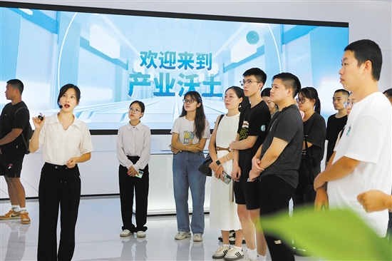 本土青年们参观蓬江产业会客厅。
