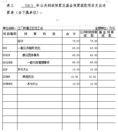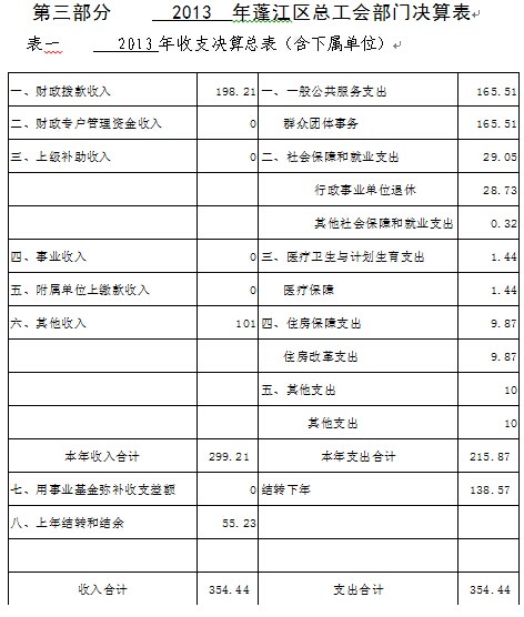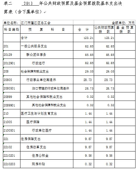 2013年度蓬江区总工会部门决算