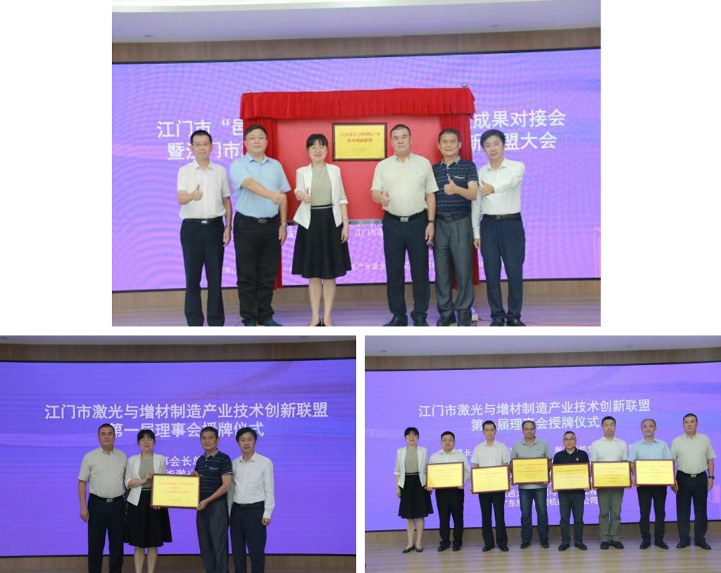 随后,活动现场进行了江门市激光与增材制造产业技术创新联盟揭牌仪式和创新联盟理事长、副理事长单位授牌仪式。