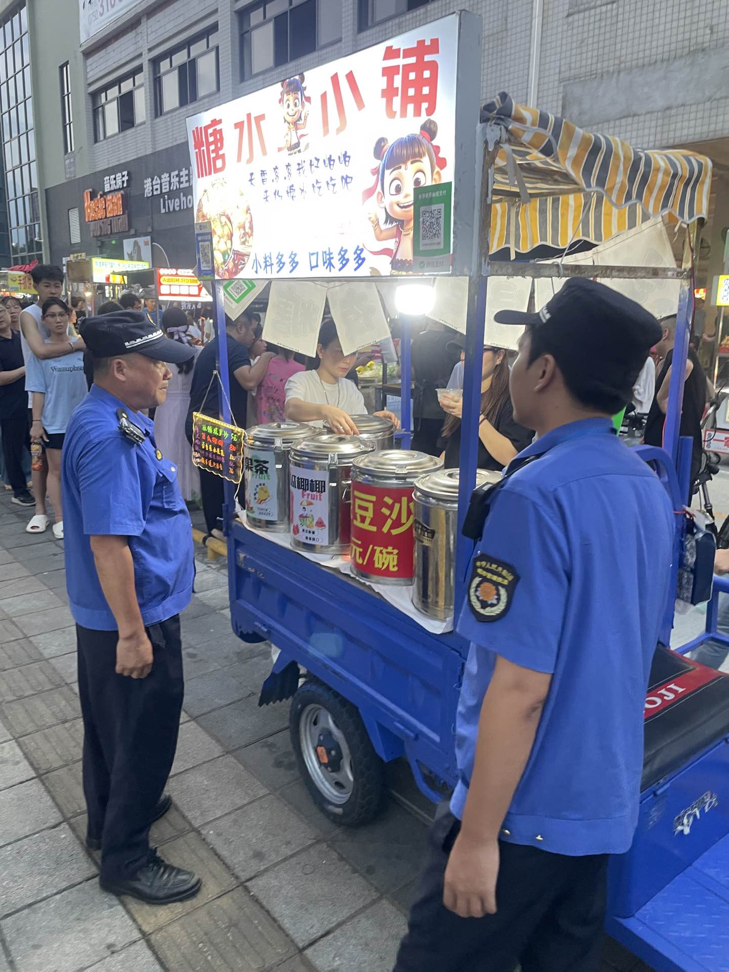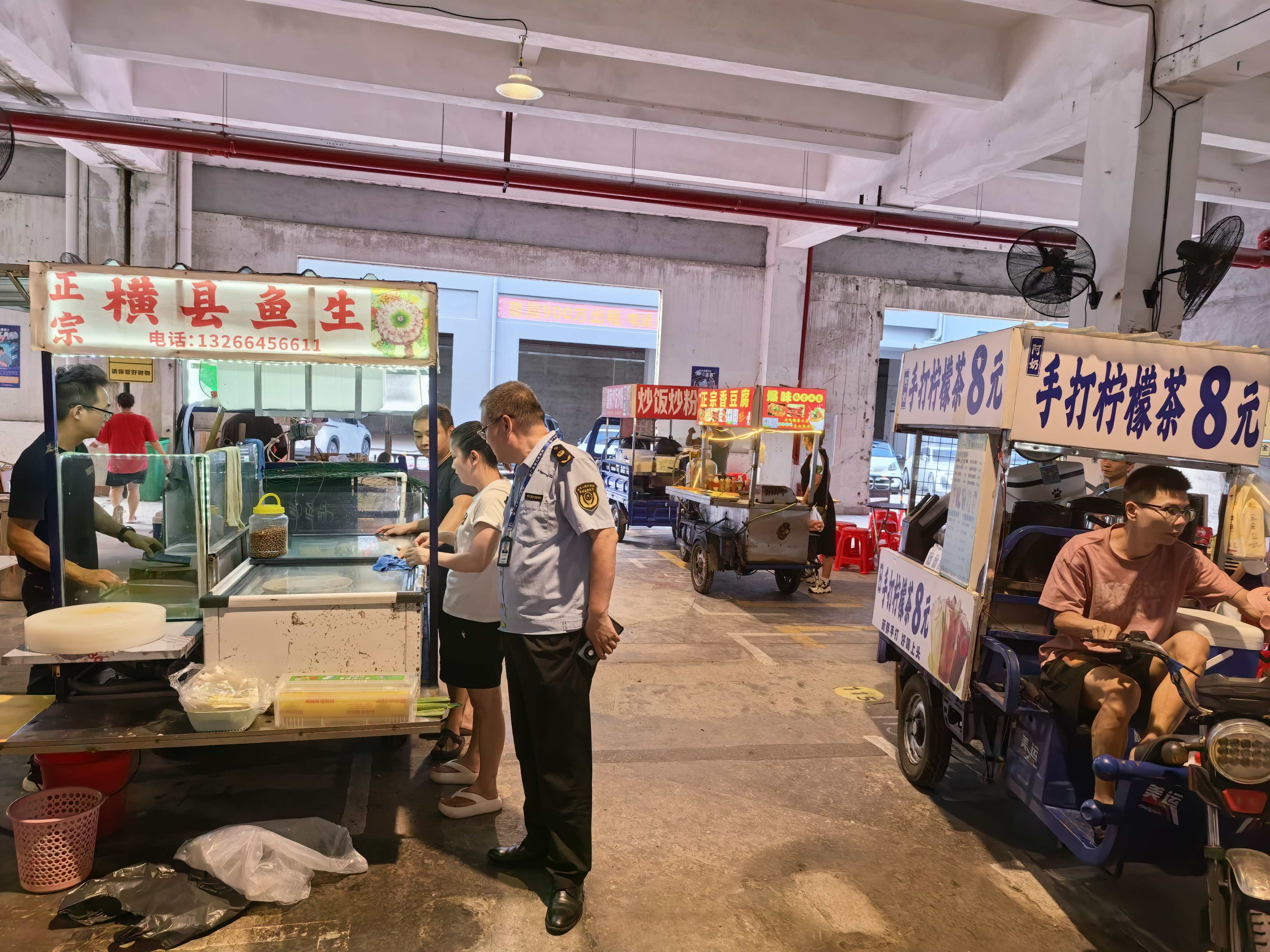 为切实筑牢摩创园夜市运营秩序与群众安全防线,近期,由环市街道办牵头,联动城管、公安、市监、交警、应急、消防等多部门迅速启动专项整治行动。行动中,各部门协同发力,同步推行“定人、定岗、定责、定时”的巡查机制,聚焦夜市周边交通疏导、防撞安全设施完善、环境卫生维护、食品安全监管、消防与燃气安全排查等核心领域开展专项整治,精准破解运营中的各类痛点堵点。