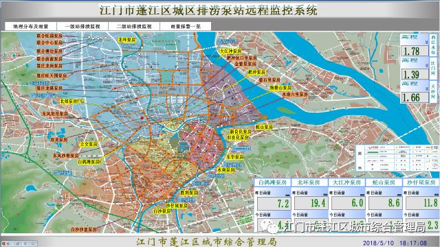 实时监控下的九处水浸黑点画面 春雨直播 城区排涝泵站远程监控调度系统