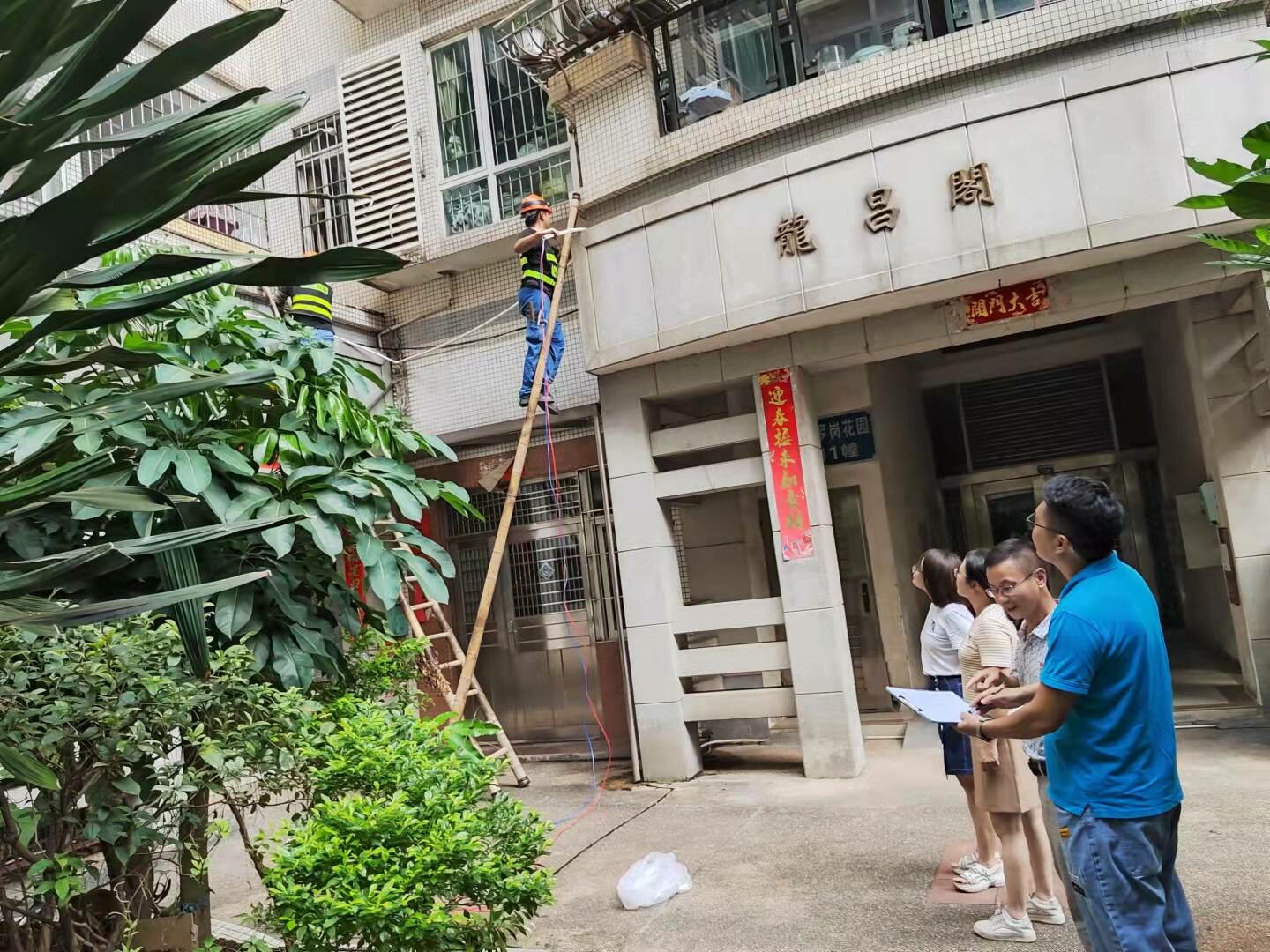 技术人员现场听取居民意见和建议 安装路灯后的小区