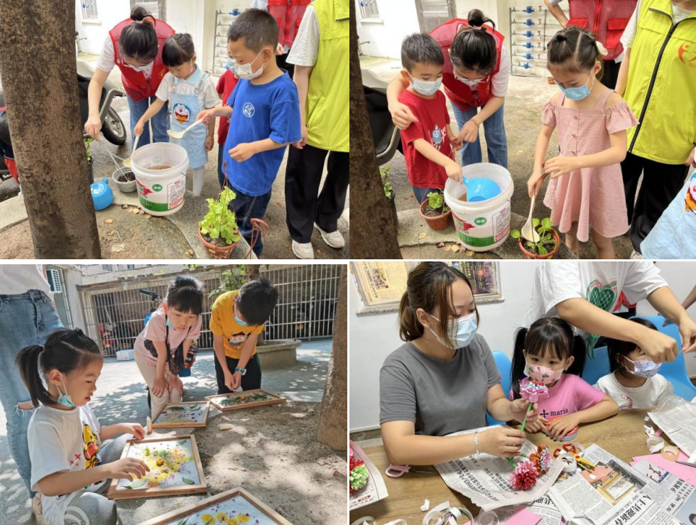 种植蔬菜、波卡西堆肥体验、废纸再造、废纸变花束……各项小组活动精彩纷呈。在波卡西堆肥体验中,孩子们用厨余垃圾堆肥栽种植物,体验到劳动实践的快乐,在提升动手能力和创造力的同时,亲身体验到垃圾循环利用变废为宝。废纸再造、废纸变花束更让孩子们目不转睛,看似平平无奇的环保手工制作,让循环利用看得见、摸得着,切身体会“垃圾是放错地方的资源”。