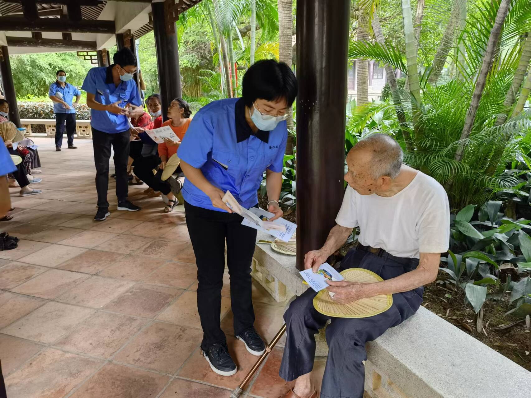 我局在辖区公园内向老年人派发养老诈骗防范知识宣传手册