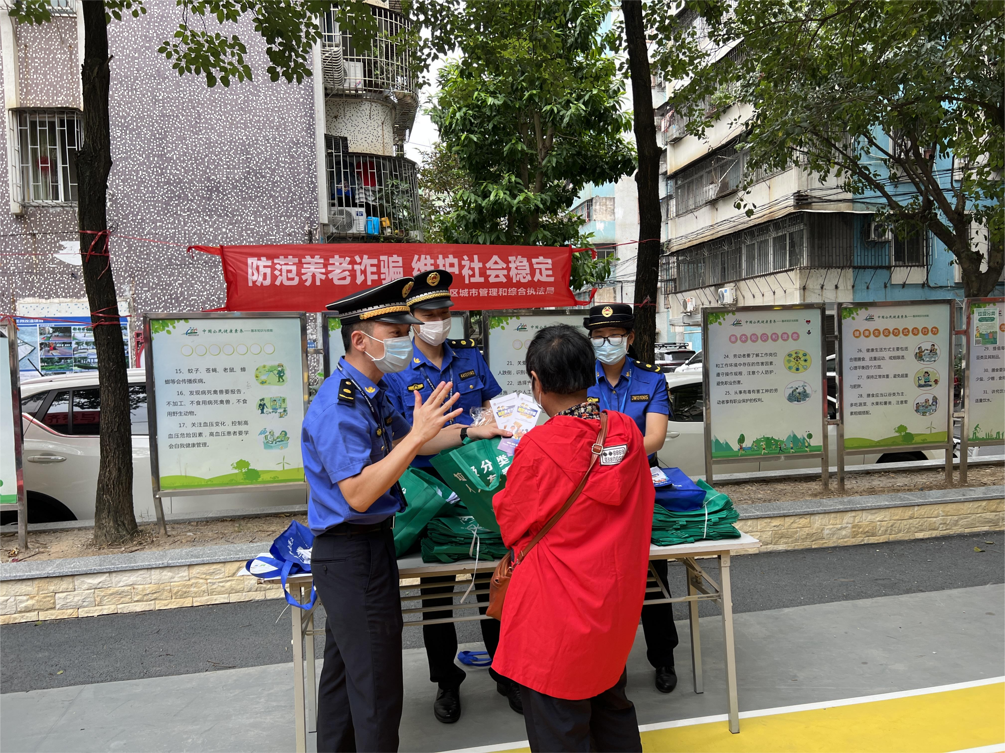 工作人员向市民讲解不法分子打着以提供“养老服务”,投资“养老项目”、销售“养老产品”、宣称“以房养老”、代办“养老保险”等旗号骗取老年人钱财的诈骗事例,并提醒老年人在生活中遇到类似情况,要及时与家人沟通或者拨打报警电话。
