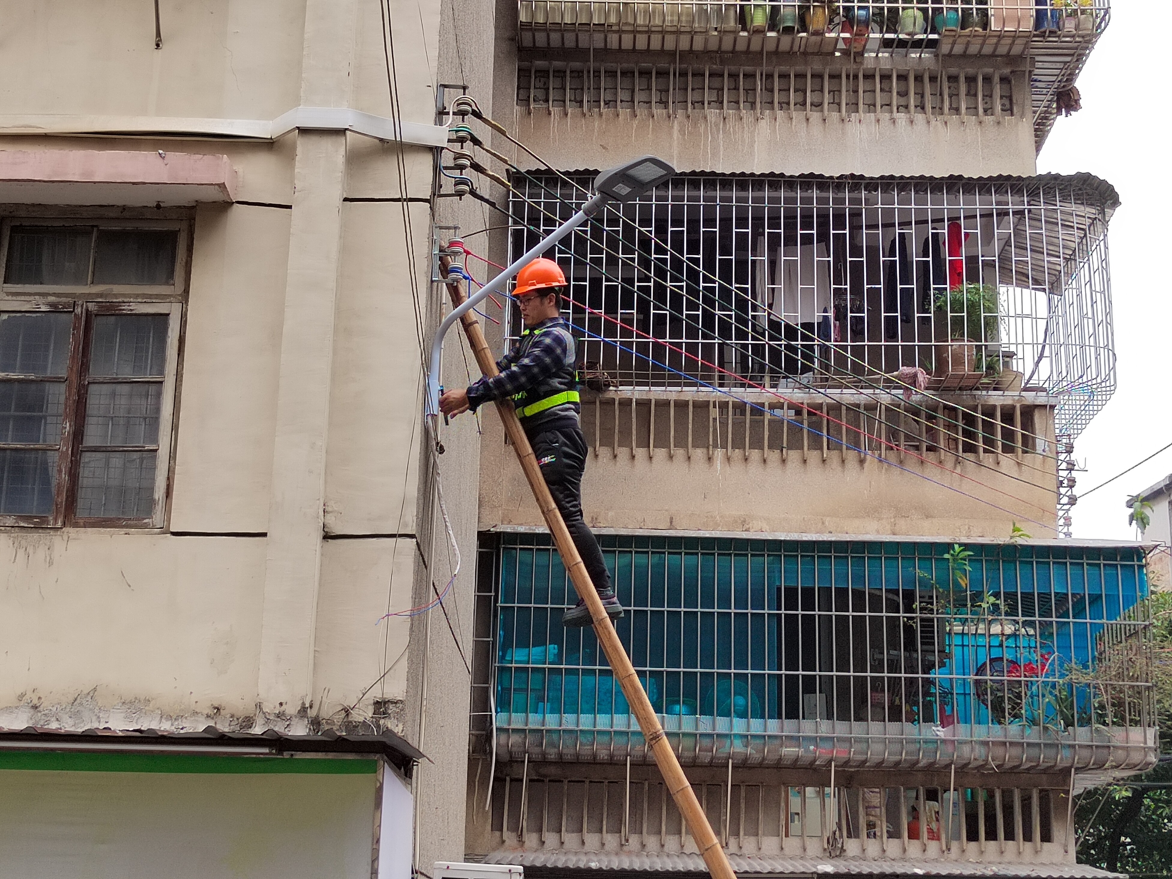 市政工人在东仓里安装路灯