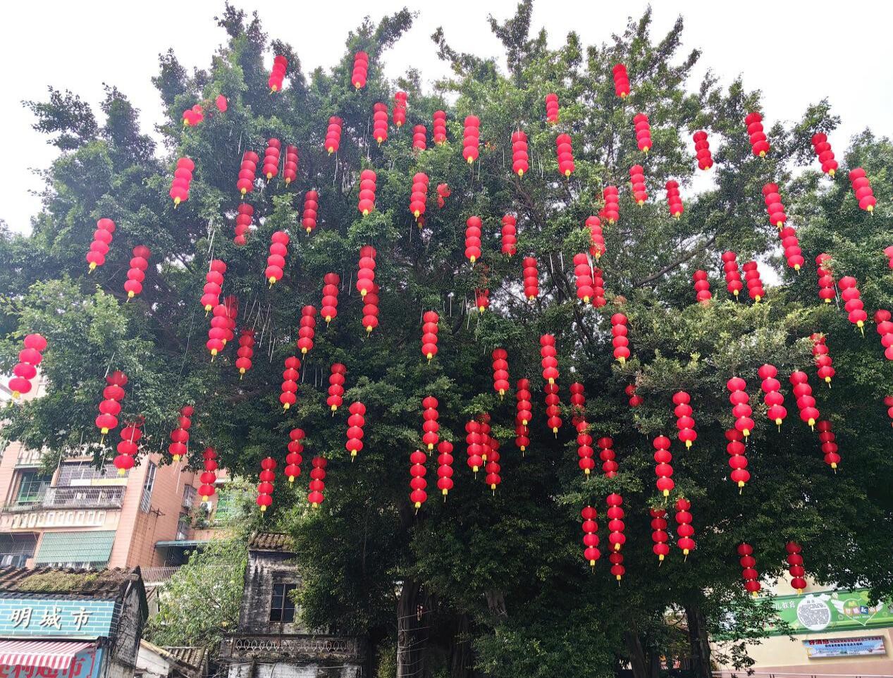 象征着团圆与幸福的红灯笼点缀在树上,成了一道靓丽的风景线