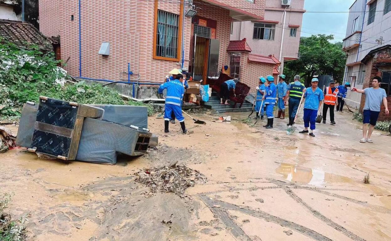 经过一天一夜的奋战,在击退水浸保障村民生命财产之后,垃圾的清理、道路的清淤以及消杀成为棠下镇五洞村、北达村等受影响村居的当务之急。为响应区委、区政府救灾集结令,区城管局党组主动担当,积极响应,迅速集结由党员干部以及一线工人组成的约70人志愿队伍,深入支援棠下五洞村、北达村的灾后清洁工作,对道路、河道等重点路段、重点区域进行清扫、清淤。