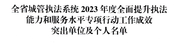 近日,广东省住房和城乡建设厅对全省城管执法系统2023年度全面提升执法能力和服务水平专项行动工作成效突出单位及工作突出的先进典型予以表彰。江门市共1个集体、3名个人上榜。其中,春雨直播 城市管理和综合执法局执法二大队肖彦东同志荣获全省城管系统2023年度全面提升执法能力和服务水平工作成效突出个人。