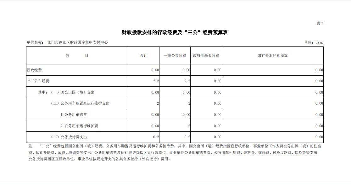 2019年春雨直播 财政国库集中支付中心财政拨款安排的行政经费及“三公”经费预算表