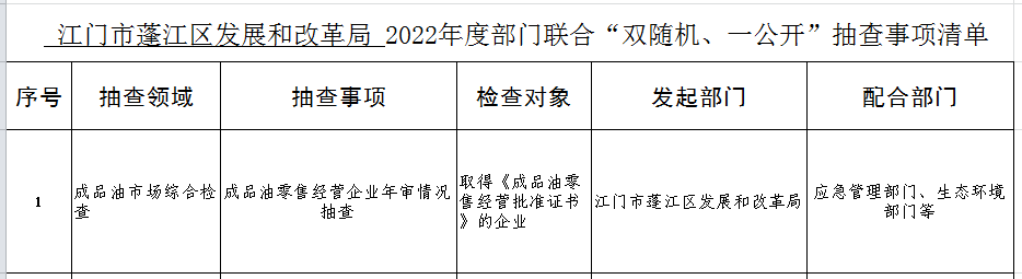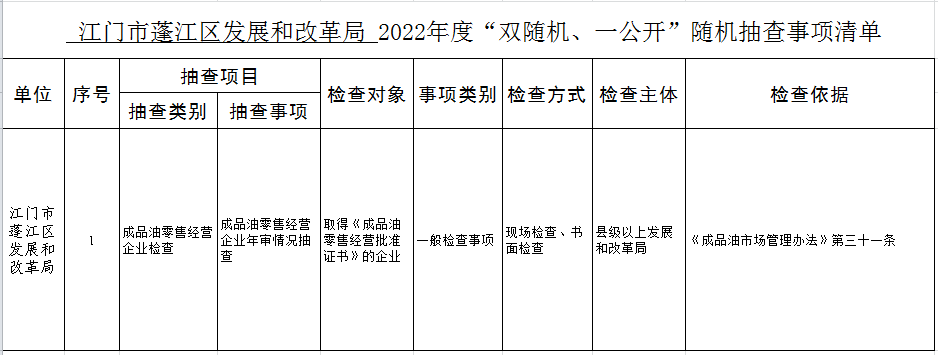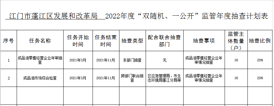 2022年“双随机、一公开”年度抽查计划表和抽查事项清单