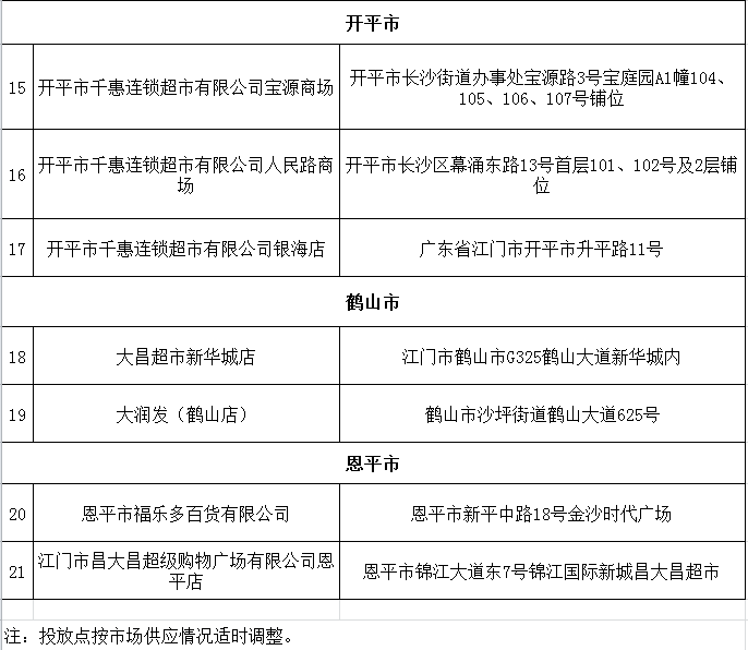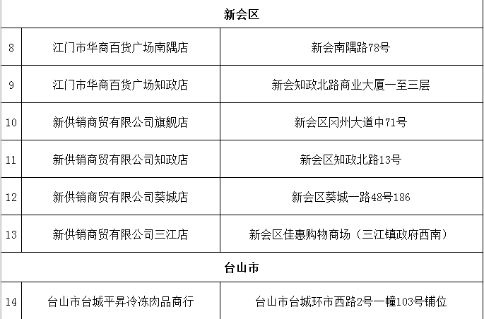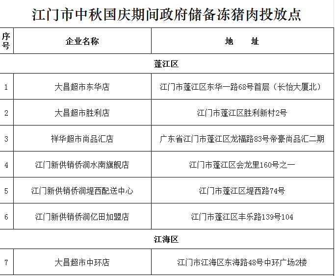 附件:江门市中秋国庆期间冻猪肉投放点
