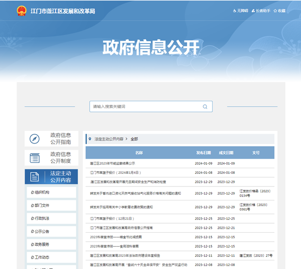 2023年,主动公开政府信息公开目录和我局专题专栏共215条。其中政府信息公开目录中公开政府信息公开年度报告1条,组织机构2条、部门文件2条、行政执法5条、公告公示8条、工作动态60条、财政预决算4条、其他10条,共发布92条;专题专栏包括组织机构2条、价格收费76条、投资管理35条、重点项目12条,共发布123条。